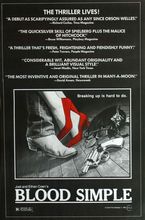 Director: Joel Coen Writers: Joel Coen; Ethan Coen Music: Carter Burwell Producer: Ethan Coen Keywords: Thriller, Texas Wife of a wealthy Texas bar owner has an affair with one of his bartenders; her husband hires a sleazy private detective to obtain photographic evidence that she is cheating, and once proved, hires him to kill the unfaithful couple. There is blood, but it is far from simple. Quirky neo-noir is the directorial debut of Joel Coen.