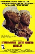 Director: Franklin J. Schaffner Writers: Dalton Trumbo; Lorenzo Semple, Jr. Based on a book: Papillon by Henri Charrière (memoir) Music by: Jerry Goldsmith Producers: Robert Dorfmann; Franklin J. Schaffner Keywords: Action/Adventure, Prison, Biography A minor criminal and safecracker is sentenced to 20 years imprisonment at Devil's Island in French Guiana for a murder he likely did not commit. Years of harsh brutality and solitary confinement take their toll, exacerbated by extended sentence from repeated escape attempts. Purported true story of Henri Charrière (nicknamed Papillon, or "butterfly"), adapted from his grim memoir. Received Oscar nomination for Best Dramatic Score.