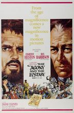 Director: Carol Reed Writer: Philip Dunne From novel: The Agony and the Ecstasy by Irving Stone Keywords: Drama, Biography, Painting The story of Michelangelo painting the Sistine Chapel under commission of Pope Julius II, filmed as epic spectacle. Michelangelo considers himself a sculptor and does not want the work; he makes a false start and changes the subject matter from the 12 Apostles to the Old Testament. The act of painting wrecks him physically, and there is question as to whether he can finish before approaching Franco-German forces sack the city. Lavish production evoking a convincing atmosphere of Renaissance Italy. Received 5 Oscar nominations including Best Cinematography.