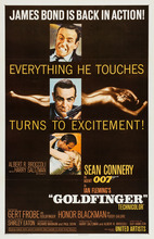 Director: Guy Hamilton Writers: Richard Maibaum; Paul Dehn From novel: Goldfinger by Ian Fleming Music Composed and Conducted by: John Barry Producers: Harry Saltzman; Albert R. Broccoli Keywords: Action/Adventure, James Bond, Lesbian, Loose Nukes Gold magnate Auric Goldfinger plots to set off a dirty nuclear device at Fort Knox, rendering its gold valueless and increasing the value of his own hoarded bullion. "Q" introduces gadgets; Bond fights his most famous adversary, and henchman Oddjob; he must contend with Pussy Galore, perhaps named ironically. The finest Bond film. Received an Oscar nomination for Best Sound Effects.