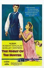 Director: Charles Laughton Writer: James Agee From novel: The Night of the Hunter by Davis Grubb Music by: Walter Schumann Producer: Paul Gregory Keywords: Thriller, Film Noir The cellmate of an executed bank robber marries the widow and murders her, but finds only the children know where the $10,000 loot is stashed. Savaged by critics upon release, Laughton never again directed, but his film's reputation has increased over time. It is an outlier film that does not follow the usual conventions of the time. Entered 1992 into the National Film Registry.