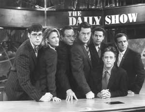 Satirical newscast, created by Madeleine Smithberg and Lizz Winstead. Anchored by Craig Kilborn 1996-98, Jon Stewart 1998-2015, and Trevor Noah 2015-present.